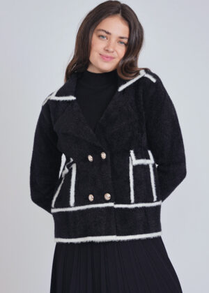 For those chilly days, wrap up in luxury with this warm furry knit cardigan. Its formal lapel adds an element of structured elegance, making it an exquisite choice for layering over both casual and formal outfits. It’s a cozy yet stylish solution for winter dressing.